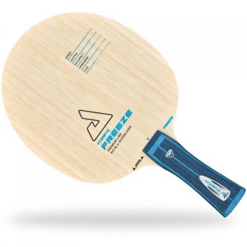 ¡La calidad se une a la innovación con las 5 + 2 capas de JOOLA Vyzaryz Freeze! El AL-C de más alto grado le da a esta madera una sensación dura y poderosa, mientras que la innovadora y lenta técnica de curado a baja temperatura brinda una sensación y control adicionales a la madera. En comparación con una madera AL-C normal, notarás que JOOLA Vyzaryz Freeze tiene más tiempo de permanencia de la pelota en contacto con la madera y produce fuertes golpes con un arco más alto. Una ventaja adicional es el sonido satisfactorio que crea. Con una capa externa Limba, los jugadores pueden confiar en JOOLA Vyzaryz Freeze para proporcionar el mejor toque para sus necesidades de giro. ¡La combinación de AL-C de alta calidad y técnicas de adhesión de vanguardia producen una madera única que nunca antes se había visto!