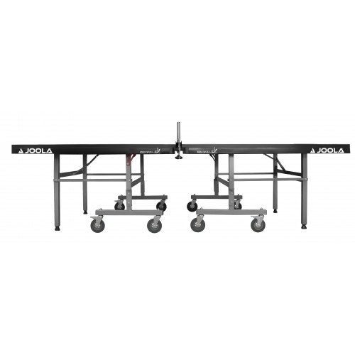 La mesa de competición JOOLA World Cup 25-S ITTF impresiona por su superficie de juego de 25 mm de grosor con tecnología de revestimiento de última generación y un sistema de transporte bien pensado. Cada mitad del tablero de la mesa se puede mover sobre 4 ruedas, 2 de las cuales están equipadas con frenos. La mesa ofrece excelentes características de juego y es ideal para competiciones profesionales.